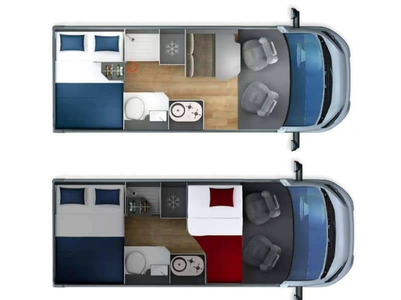1 cama doble trasera, 1 individual transformable en el salón